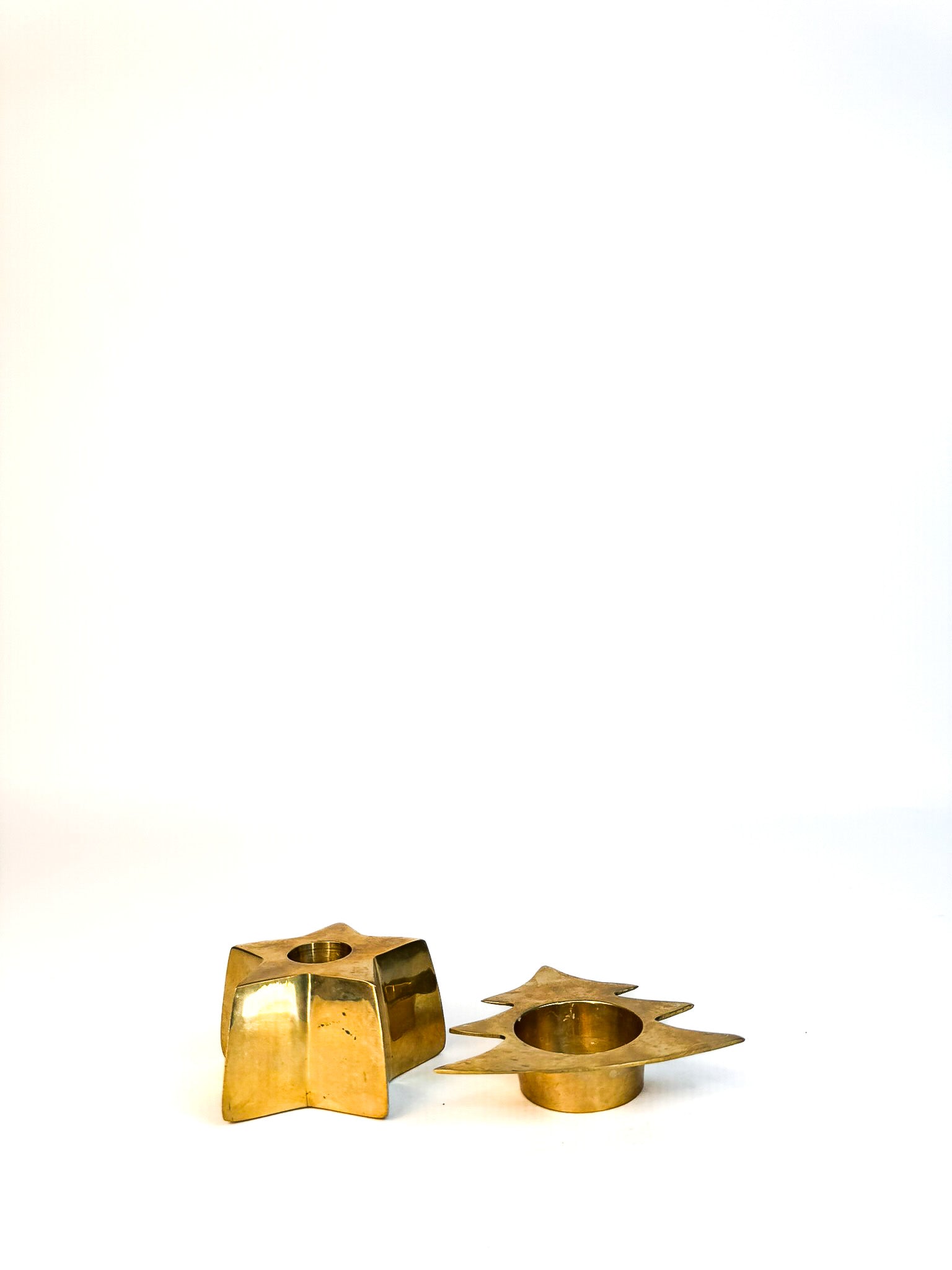 Brass Tree and Star Candle Holders - Set of 2